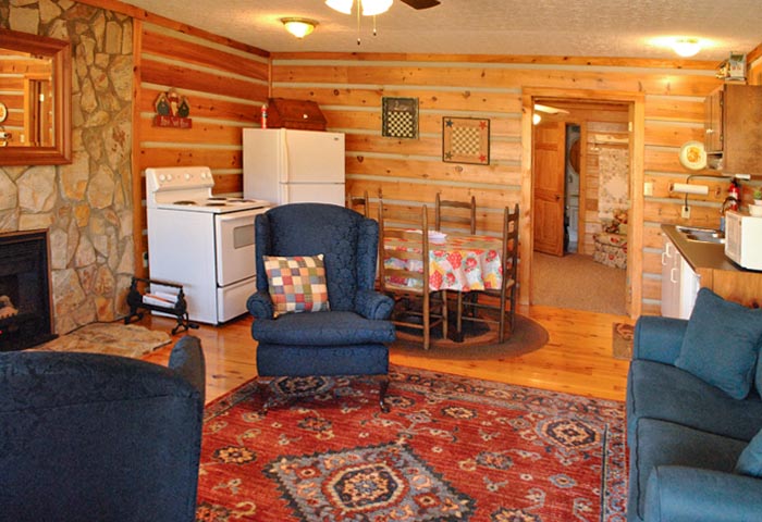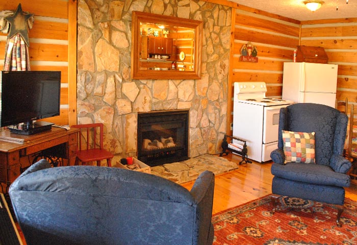 This large 2 room unit features 2 double beds, large family room w/ sofa bed, fireplace, full bathroom and a full kitchen. This room is perfect for a family-pricing varies w/ occupancy.
