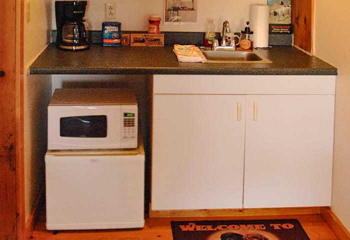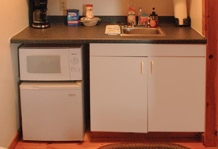 This lovely room features a king sized bed, kitchenette, and full bathroom.